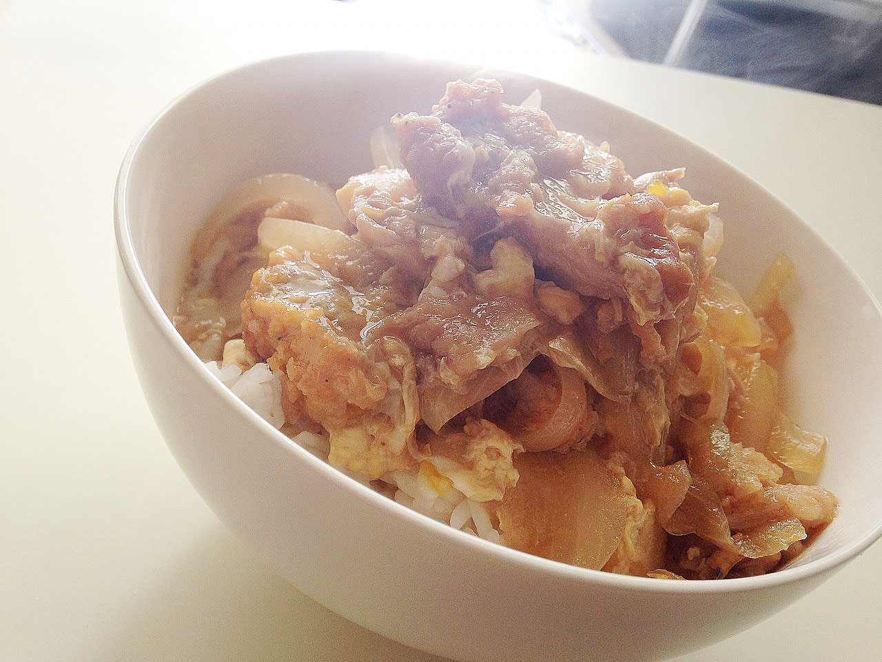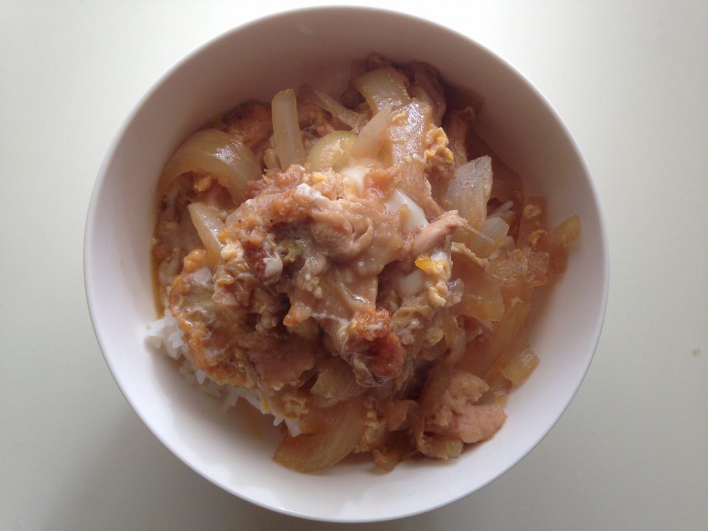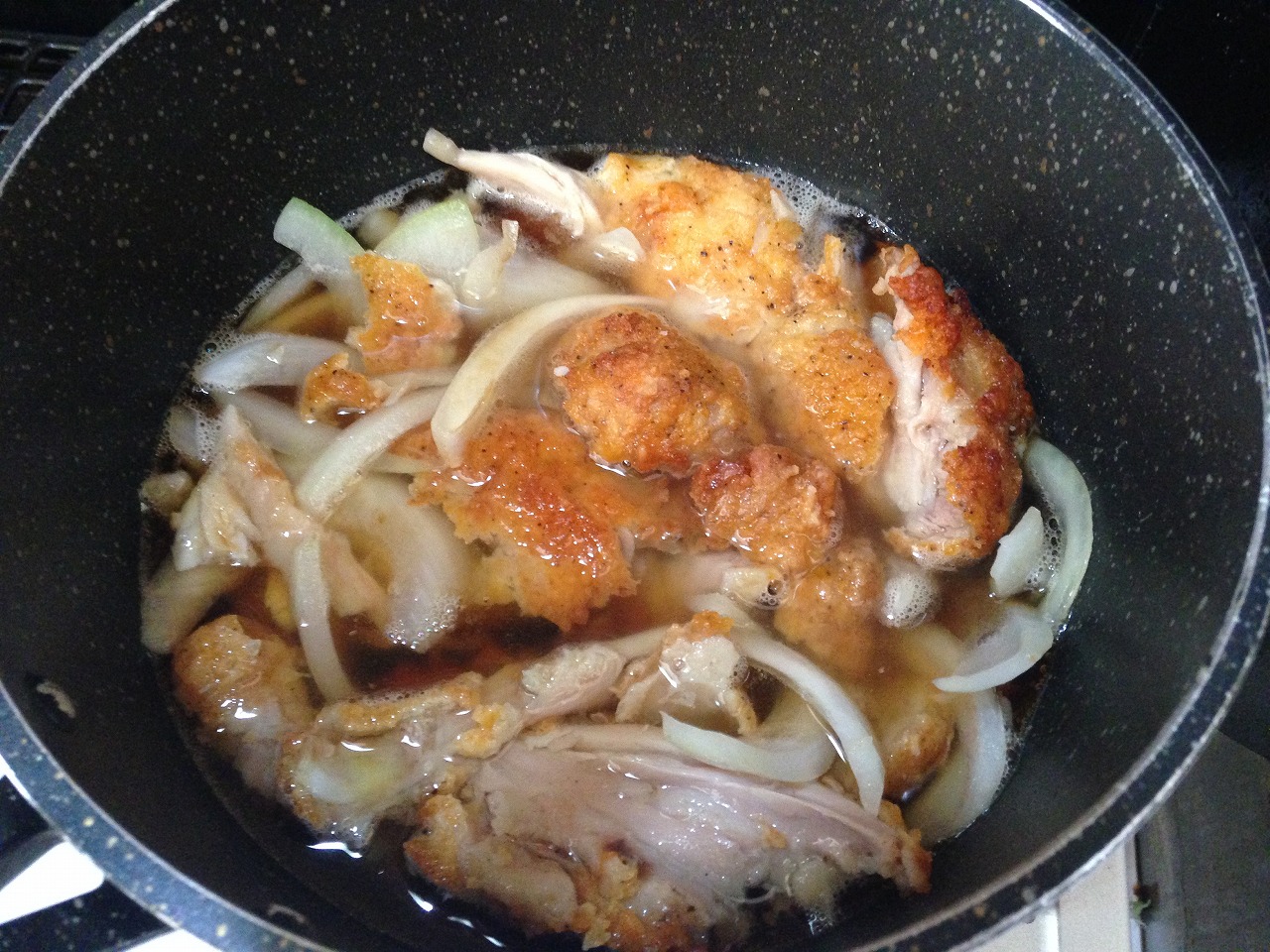 まとめると、フライドチキンを和風っぽい汁で煮て卵でとじて丼にして食った。そんな感じです。