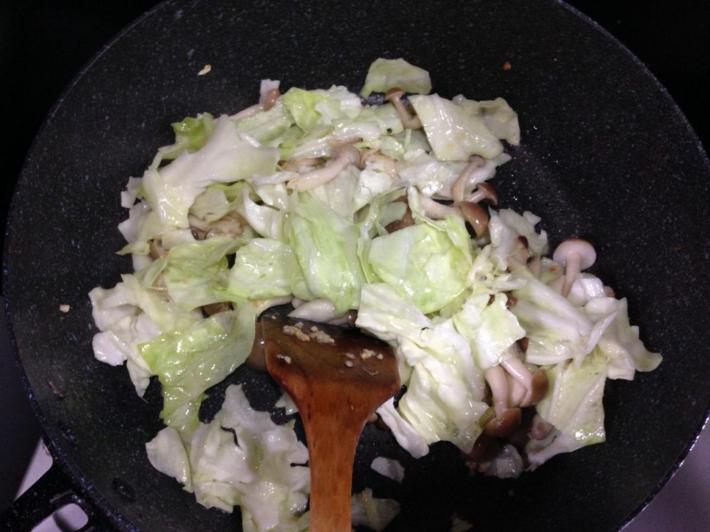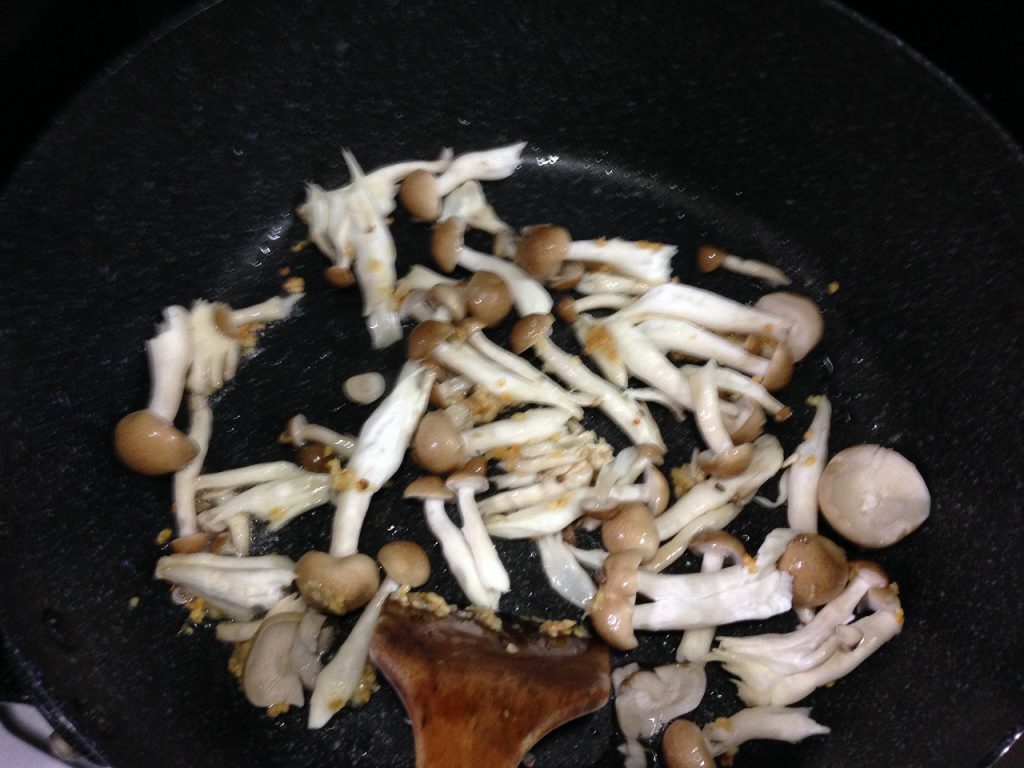 サラダ油に生姜とにんにくを入れて一寸炒めて、しめじを炒める。