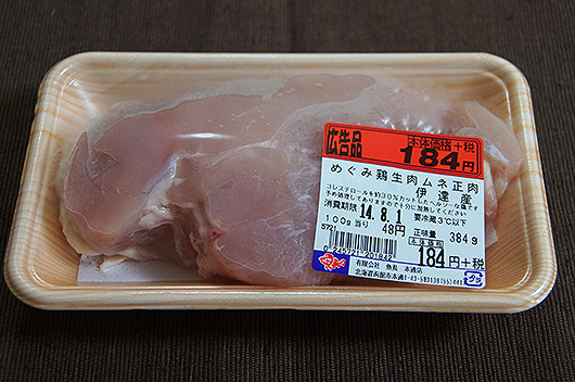 立ち寄ったのは、函館ローカルスーパーマーケット「魚長」。名前の通りなんとなく魚介類は安めで新鮮で美味しい気がしますが、肉類は普通です。おあつらえ向きにこの日は伊達市産の鶏むね肉が特売だったみたい。