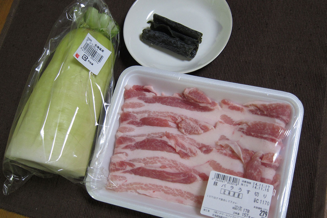 前置きはさておき。今回もバラ肉の仕入先はコープさっぽろ人見店。大活躍だな。もともとがふろふき大根なので、材料はシンプルです。