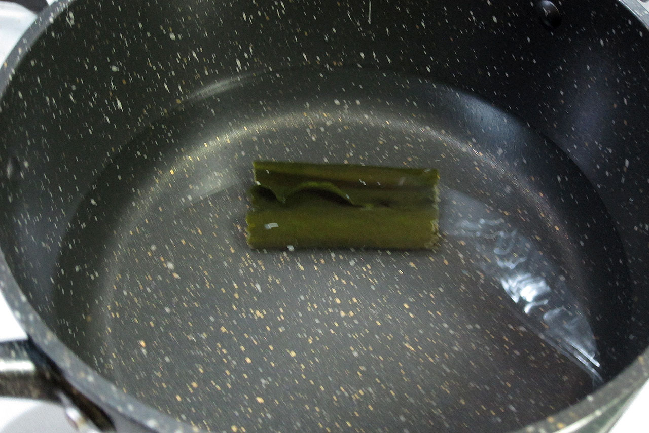 先に鍋に水を入れて、昆布を投入しておきます。