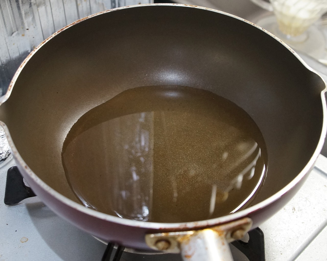 油をたくさん使うのも嫌だったので、底が深めのフライパンに油を入れまして、揚げ焼きってやつですな。