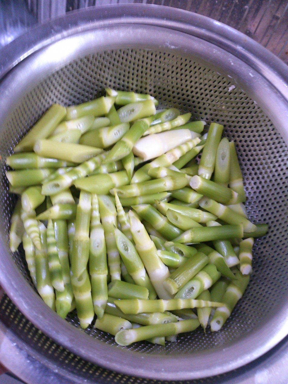 この細いタケノコは、姫竹とか笹竹とか呼ばれていて、5月~6月が旬のようです。wikipedia的にはこのへん(チシマザサ)でしょうか。函館は車で少し走れば山菜が豊富な山もあり、海もあり……山の幸も海の幸も豊富です。